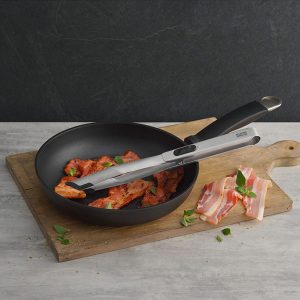 بادقت و با احتیاط غذا را بلند گرده و داخل ظرف بریزید. نوک های باریک پوشیده شده با سیلیکون با حرارت بالا ظروف نچسب را خراش نمی دهد. حرکت سریع انگشت شست، انبر را برای نگهداری ایمن قفل می کند. کنترل بیشتر برای چرخاندن و آبکاری غذاها. سرهای سیلیکونی مقاوم در برابر حرارت برای ظروف نچسب ایمن هستند. قفل برای ذخیره سازی ایمن مقاوم در برابر حرارت تا ۲۳۰ درجه؛ C/445 درجه؛ F. هشدار: برای استفاده با تماس مستقیم شعله استفاده نمی شود.