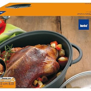 تابه بلند بيضي 8 ليتر با درب شيشه اي Kerros