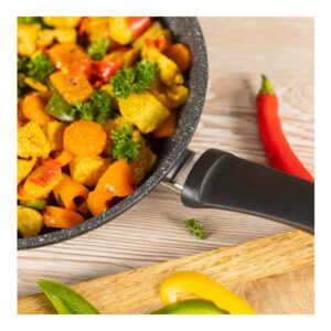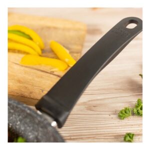 • دسته ارگونومیک با طراحی خنک: راحت در دست گرفته می‌شود؛ مناسب انتقال از اجاق به فر (تا ۲۲۰ °C)