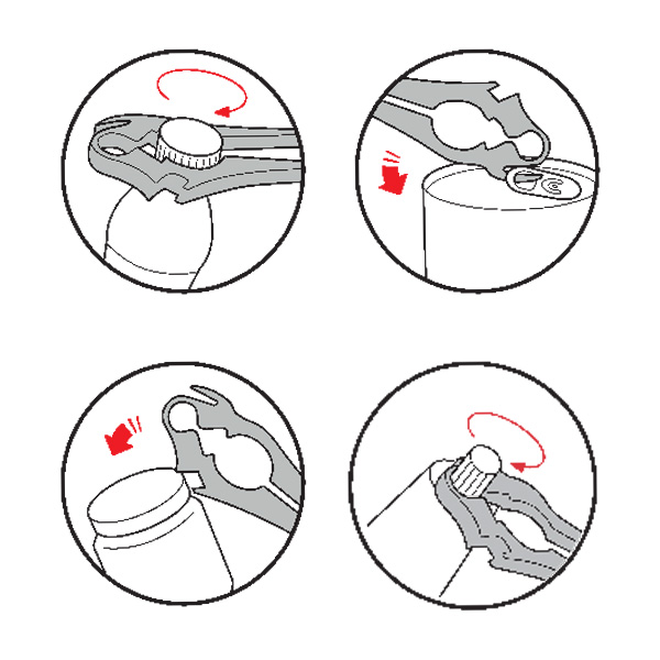 این ابزار دستی ساخت سوئیس، مهر و موم خلاء شیشه ها را می شکند، بطری ها، زبانه های کششی و رویه های پیچ را باز می کند. این پنج درب بازکن در یک ابزار کوچک میتوانید استفاده کنید.